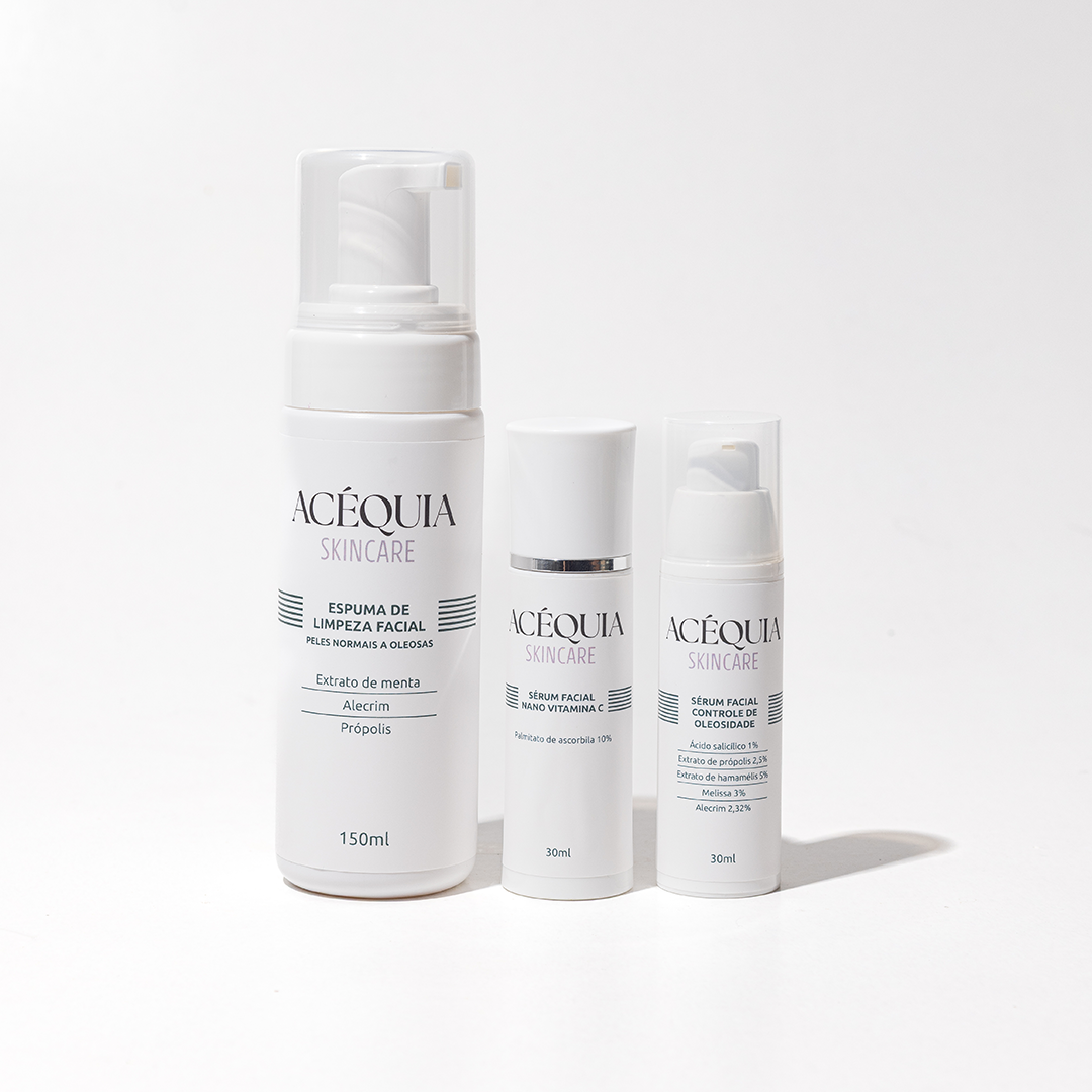 Espuma de Limpeza Facial Pele Oleosa Acéquia + Sérum Controle de Oleosidade Facial Acéquia + Sérum Vitamina C Acéquia